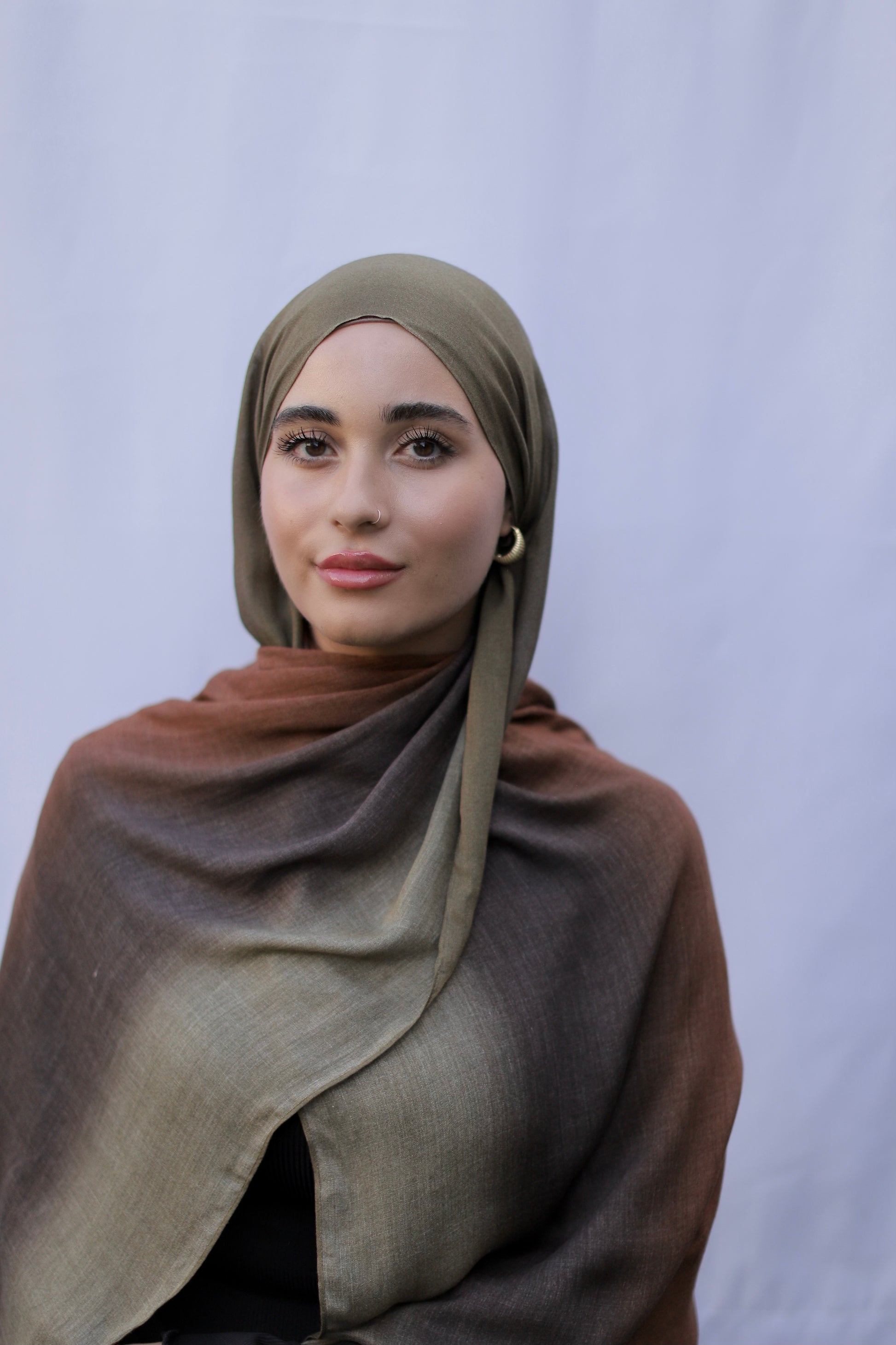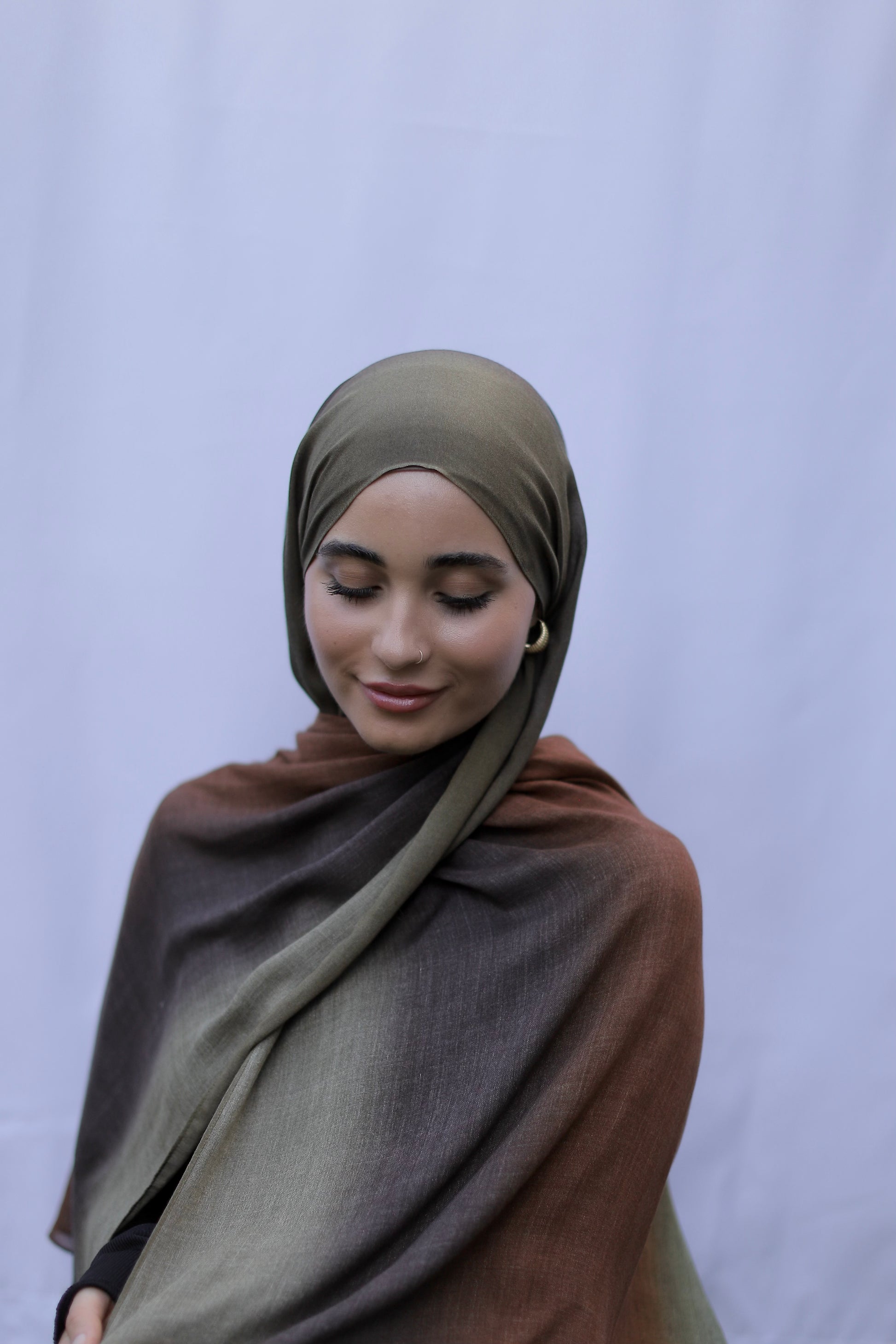 Unser „Sahara Moss“ Modal Kopftuch kombiniert sanfte Oliv- und Erdtöne mit edlem Braun und Sandfarben. Inspiriert von den stillen Wüstenlandschaften und dem satten Grün seltener Oasen, verleiht dieses Kopftuch deinem Look zeitlose Eleganz.