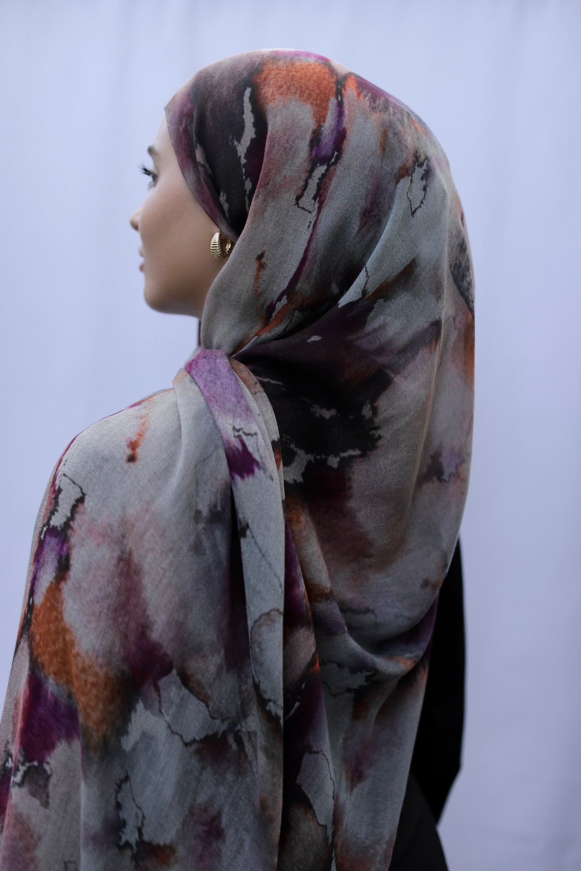 Weiche Farben in Rosé, Blau und Violett verlaufen ineinander wie in einem Aquarell. Der Look ist feminin, ruhig und besonders.
